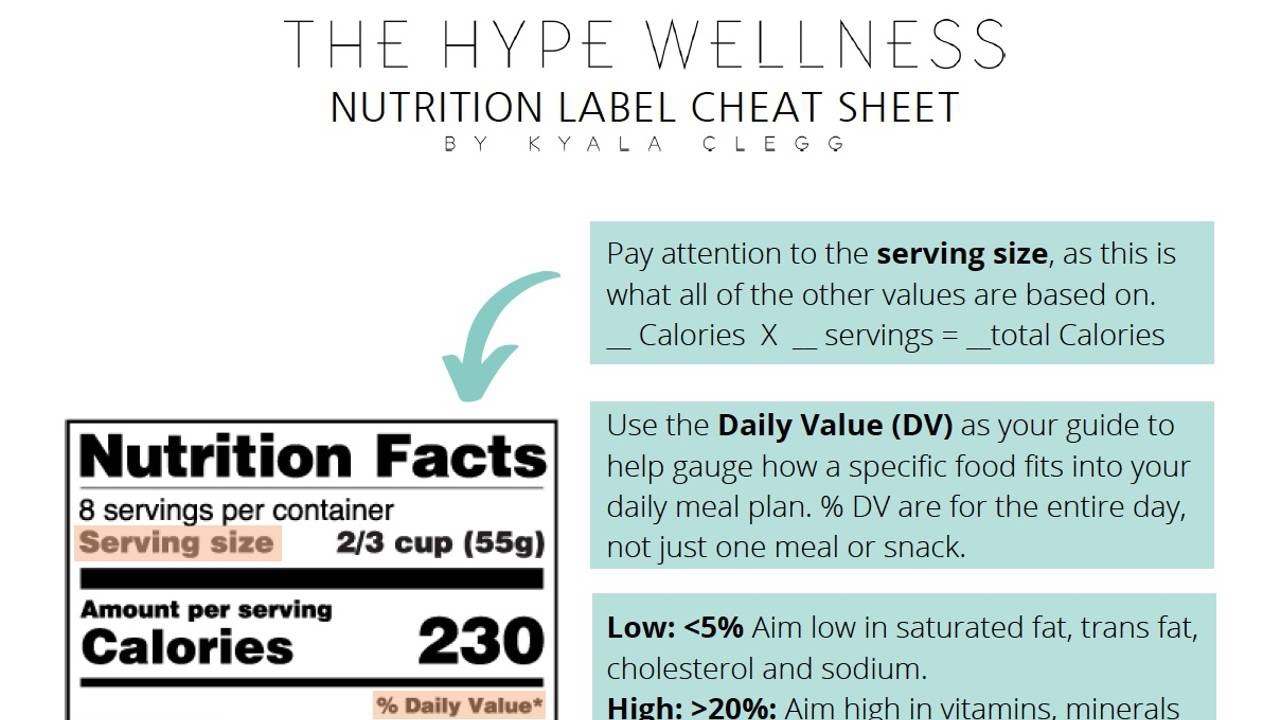 You'll receive your own copy of my downloadable cheat sheet that takes the guesswork out of reading Nutrition Facts Labels! Save it to your phone for quick reference in-store or keep it on hand to check through your pantry.